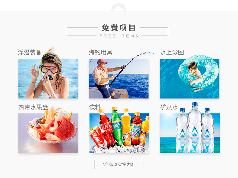 | 選配項目: | 摩托艇、飛魚、香蕉船、水上飛行器、飛拖、滑板、托傘 | ||||||